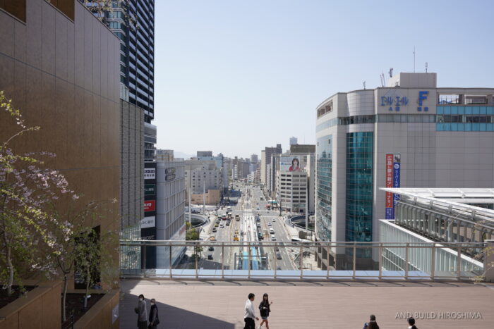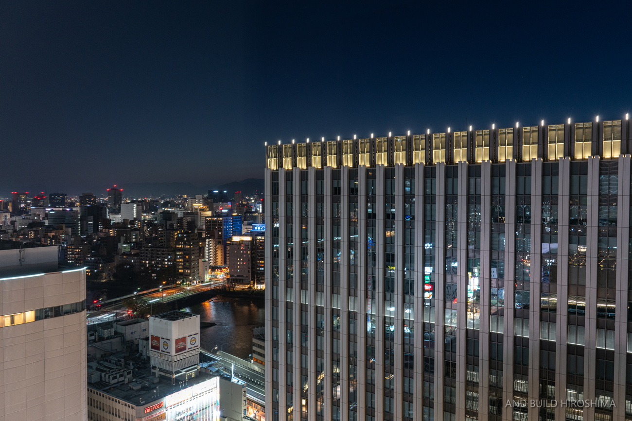 ビルの背後の瀬戸内海の島々がいかにも広島らしい景色です。