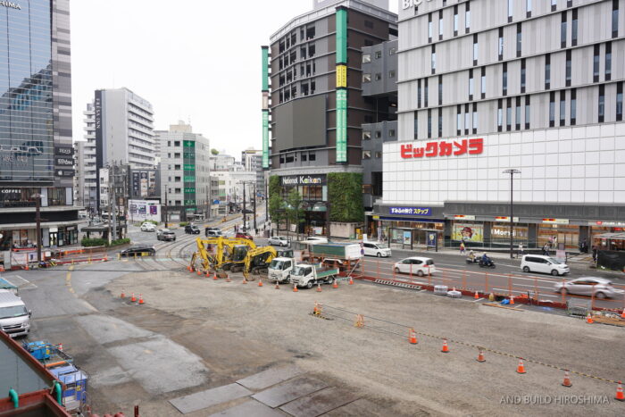 8月2日まで供用していた地上の旧広島駅のりばは、軌道部や電停の上屋も含めてすべて撤去され、更地になっていました。