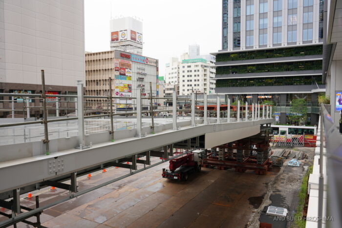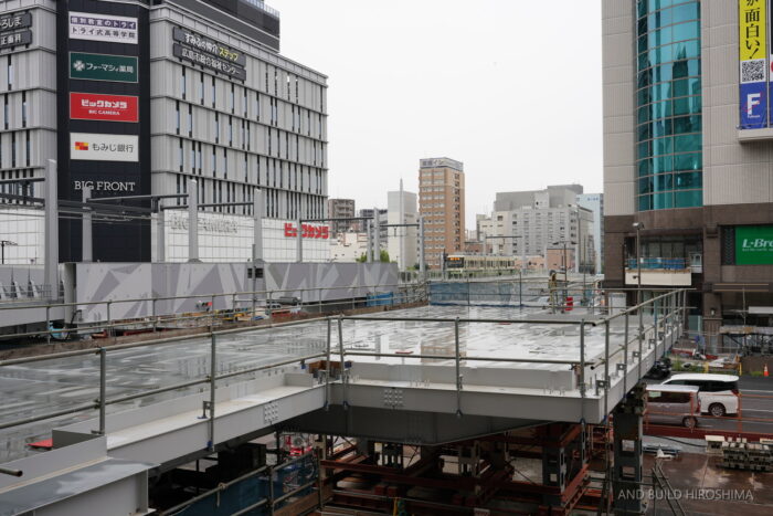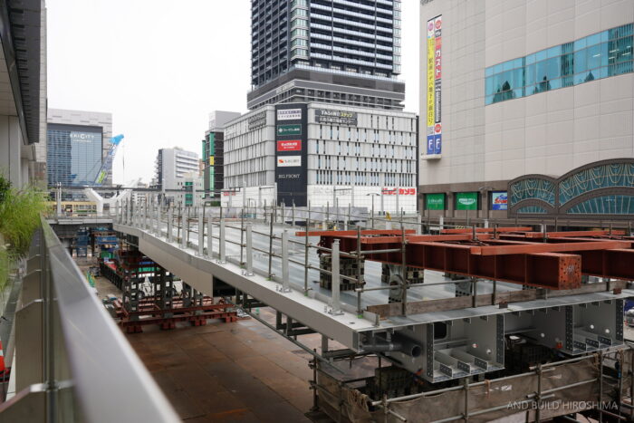 電車橋の東側にも同様にビッグフロントひろしまに接続するペデストリアンデッキ(Bデッキ)が設置される予定です。