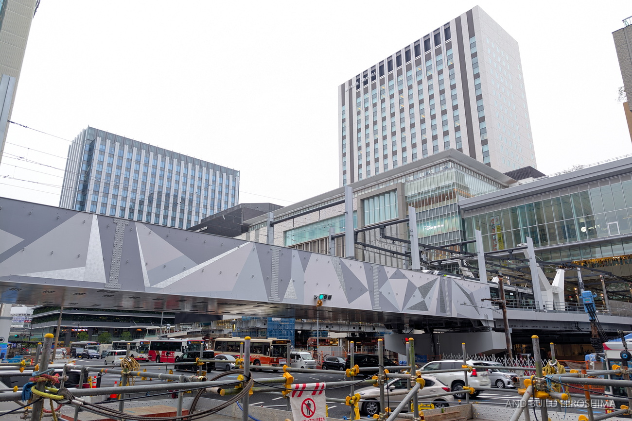 JR広島駅南口再整備 2025.09(Vol.104) 路面電車高架橋にシンボル『折り鶴』デザイン