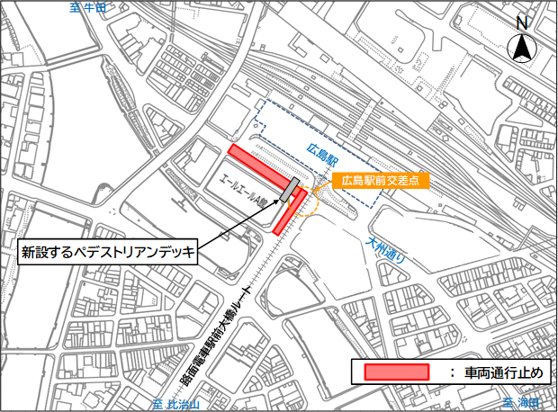 【広島市公式ウェブサイト】:エールエールA館方面へ接続するペデストリアンデッキ架設に伴う交通規制