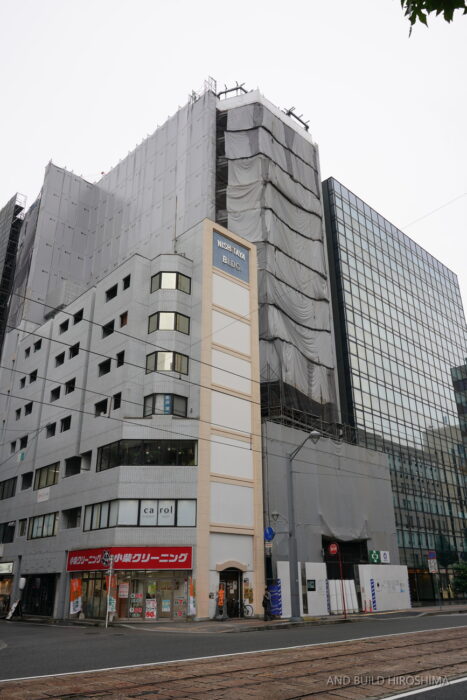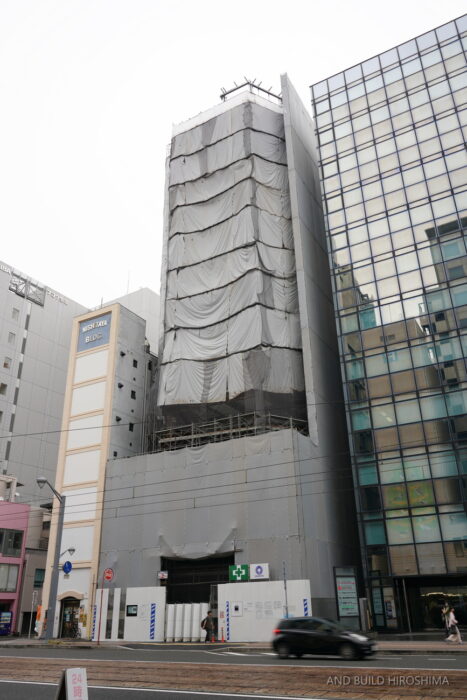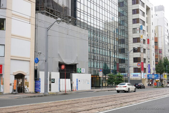 交差点から北に伸びる白島通り沿い、広島日生みどりビルに隣接した敷地に建設中です。