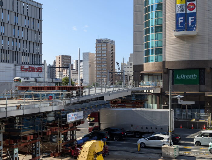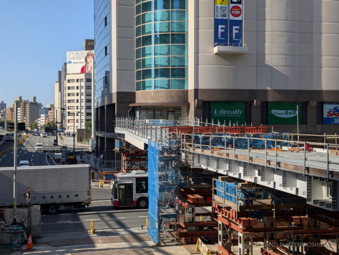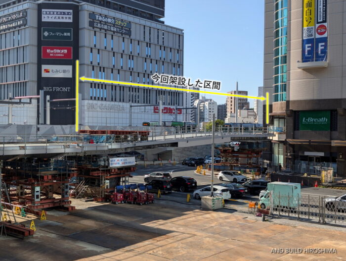 この事業は、路面電車橋の左側(東側)にビッグフロントひろしまに接続するデッキも設ける予定で、