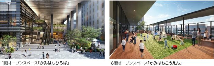 歩道に面した1階のピロティは「かみはちこうえん」、低層部屋上となる6階は「かみはちひろば」となるようです。