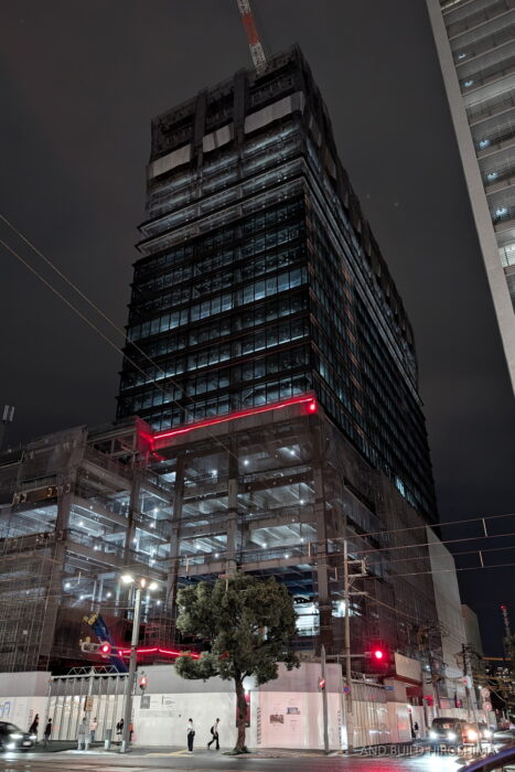 完成すれば、オフィスフロアは白い照明、ホテルフロアは暖色系の照明となり印象も変わりそうです。