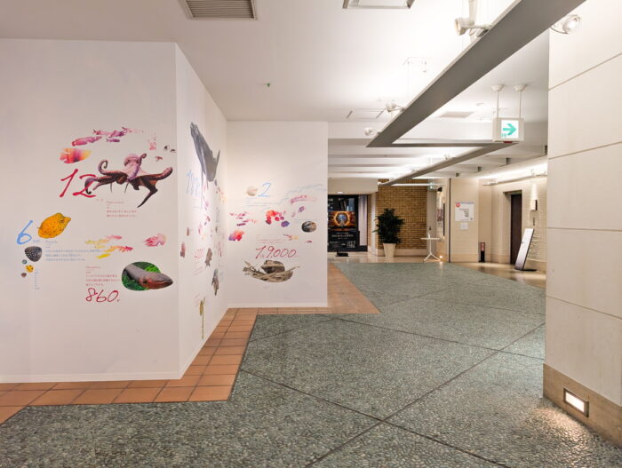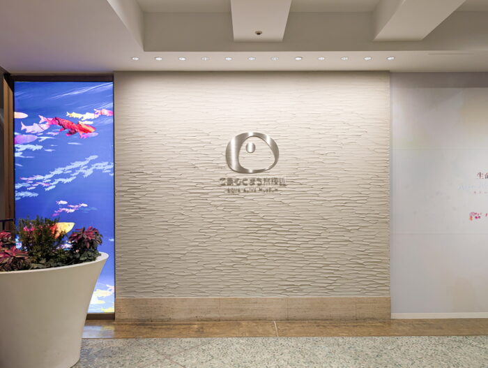 吹き抜けのアトリウムからのエントランスに当たるこの場所に、水族館のサインがお披露目されていました。