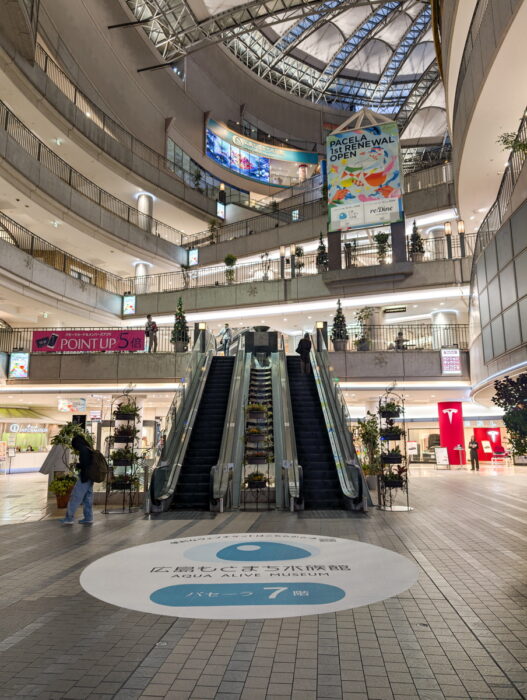 また、1階エスカレーター前のほか、各所に広島もとまち水族館をPRする案内が登場しています!