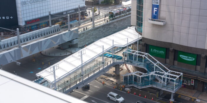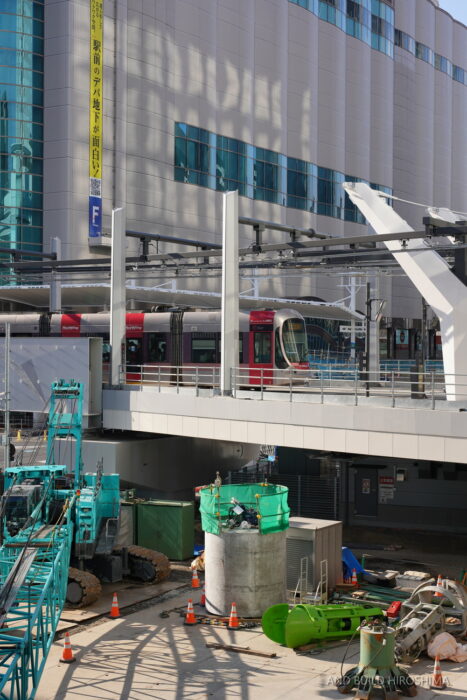 先行するのは路面電車の高架橋より西側、エールエールA館に接続するAデッキです。