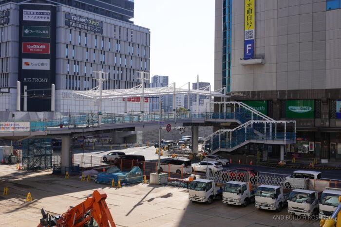 撮影しているビッグフロントひろしまとを結ぶデッキです。