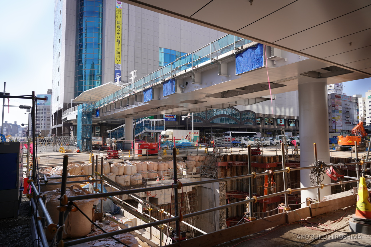 足元では、新しいバスのりばに合わせ既存の地下広場を拡張する工事が進められています。