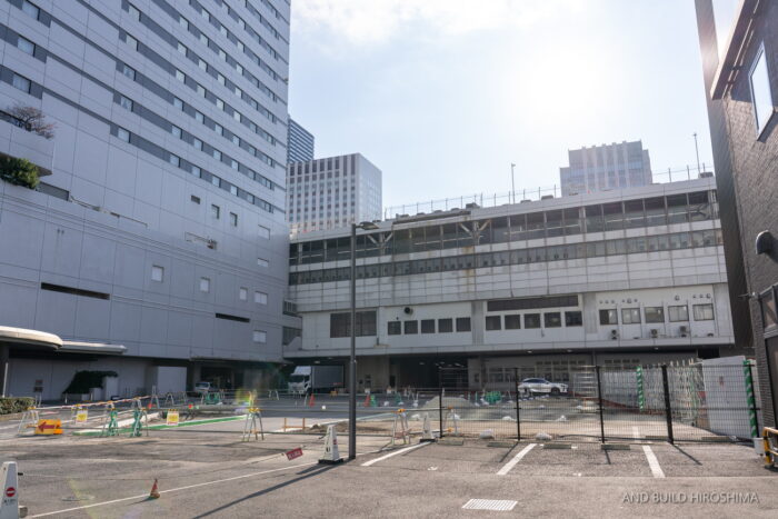 最後に、北口のホテルグランヴィア広島の横、かつての新幹線屋上駐車場へのスロープ跡地に移動してきました。