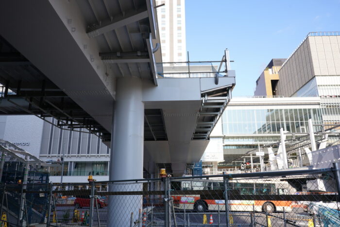 1階のバスのりばにアクセスするためのエレベーターや通路を設けるための拡張を行っています。