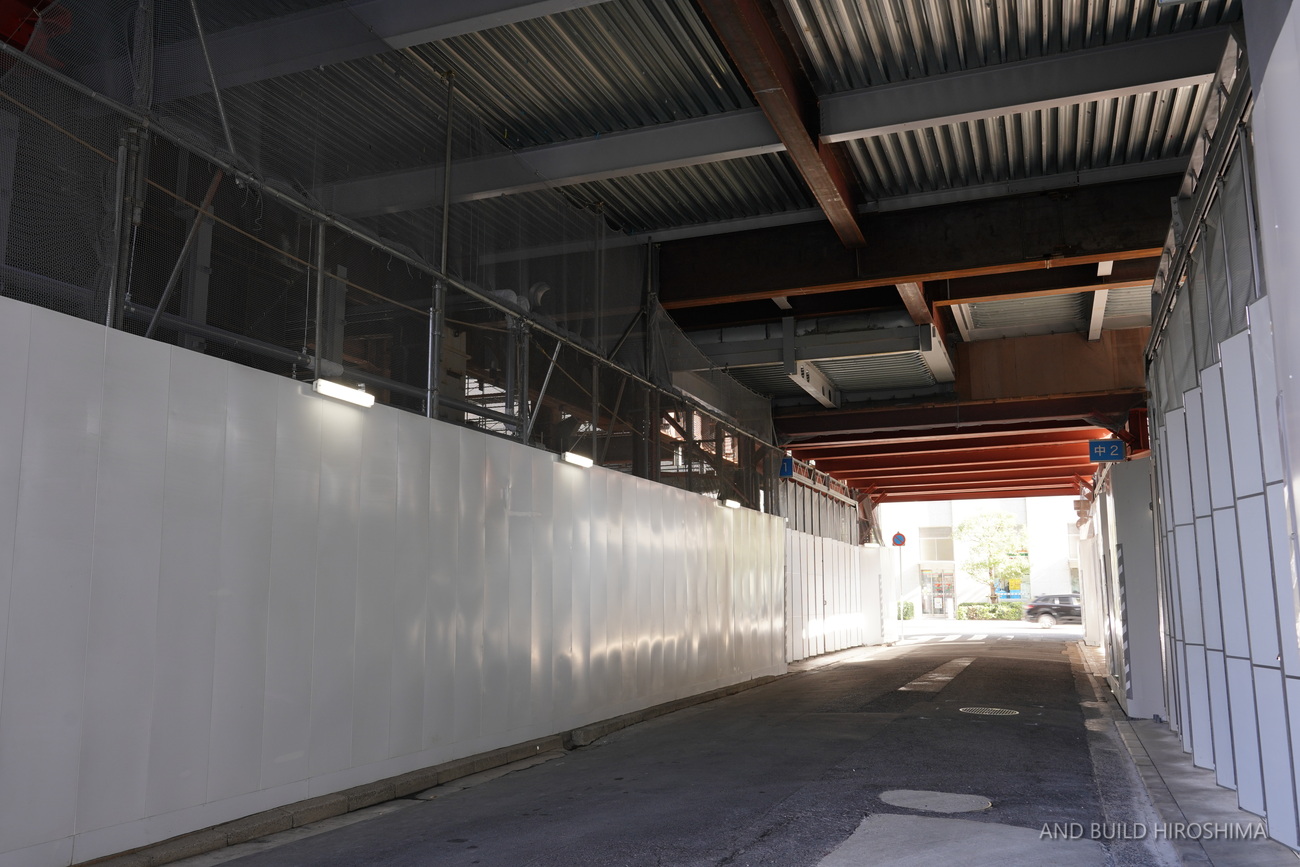 相生通りに面した部分は、施工上の都合からまだ半分しか構築されていません。