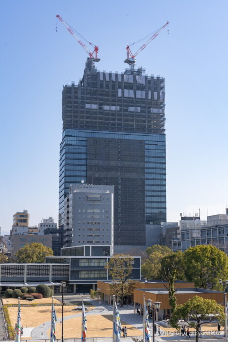 密集したビル群の中で圧倒的な高さと外観で存在感を放ちます。