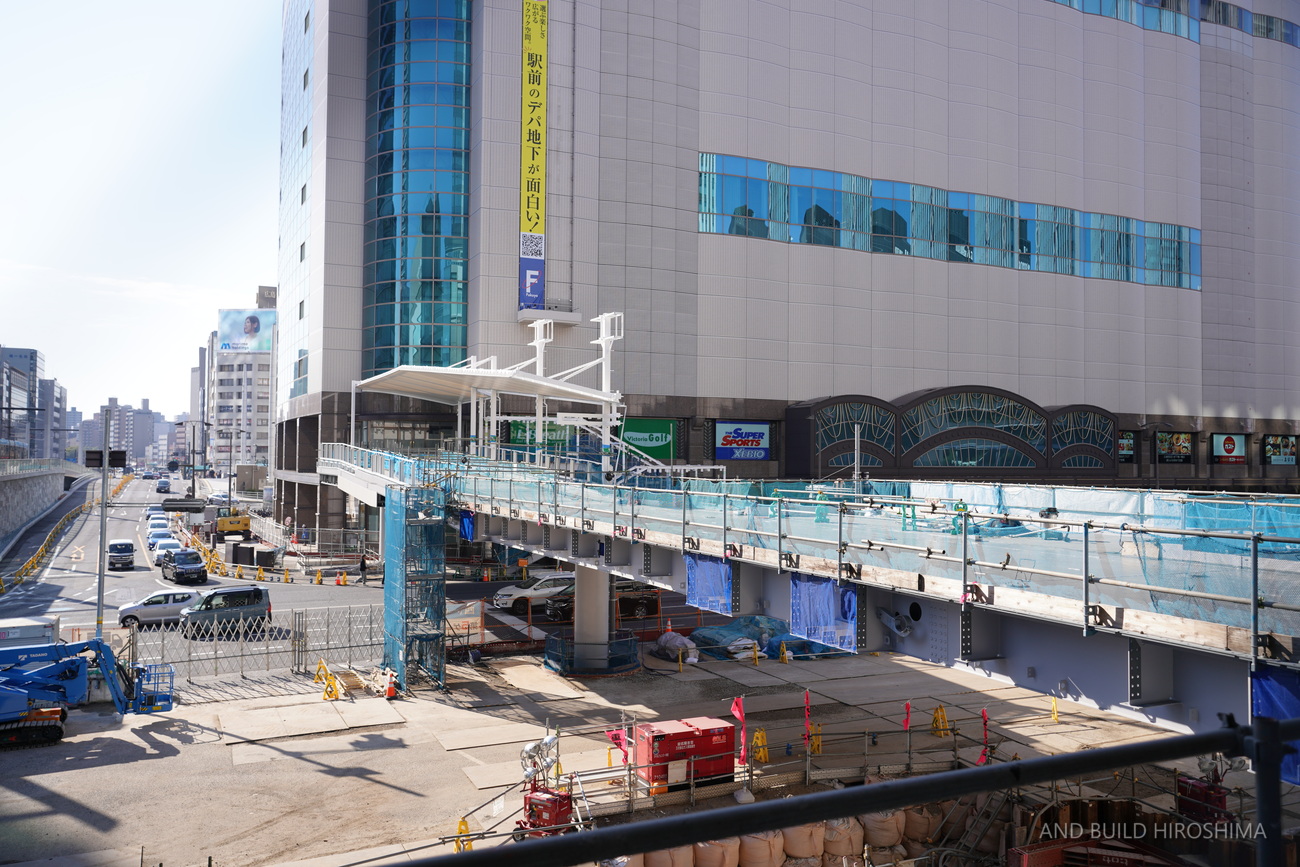 広島駅ビル「ミナモア」と直結するペデストリアンデッキも同日から供用開始となることも公表されました。