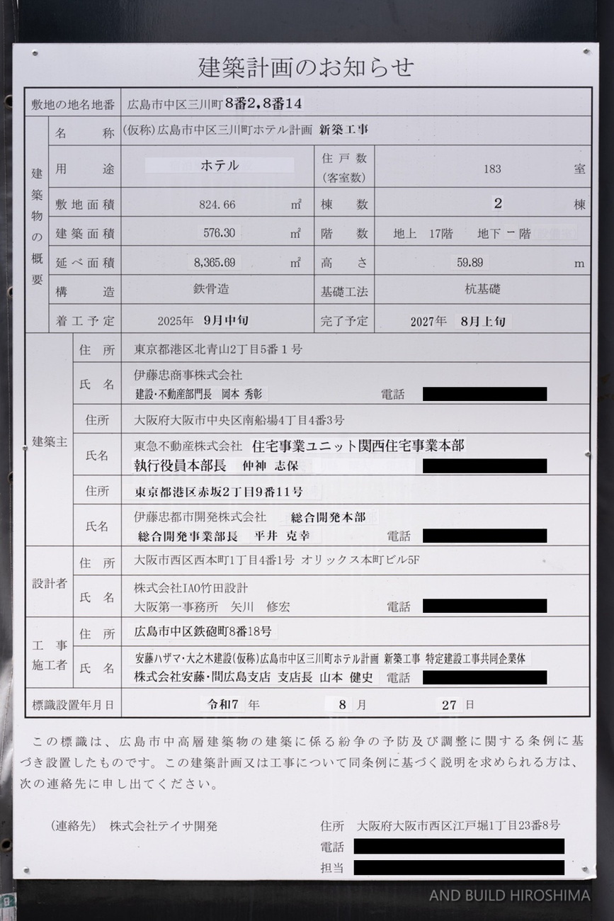 名称 ◆ (仮称)広島市中区三川町ホテル計画