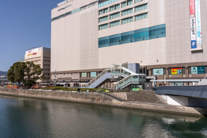 Aペデを介したミナモアからの歩行者が、エールエールHIROSHIMAの2階の館内を通りそのまま南側の猿猴川河川緑地に抜けられる新たな歩行者動線も整備中です。