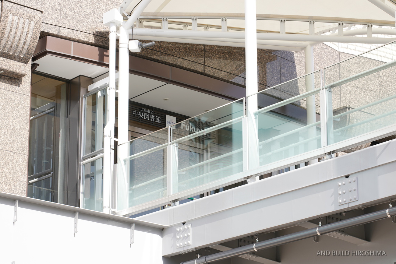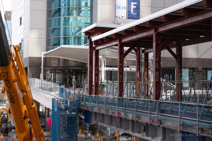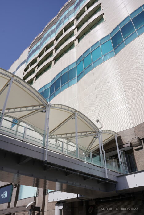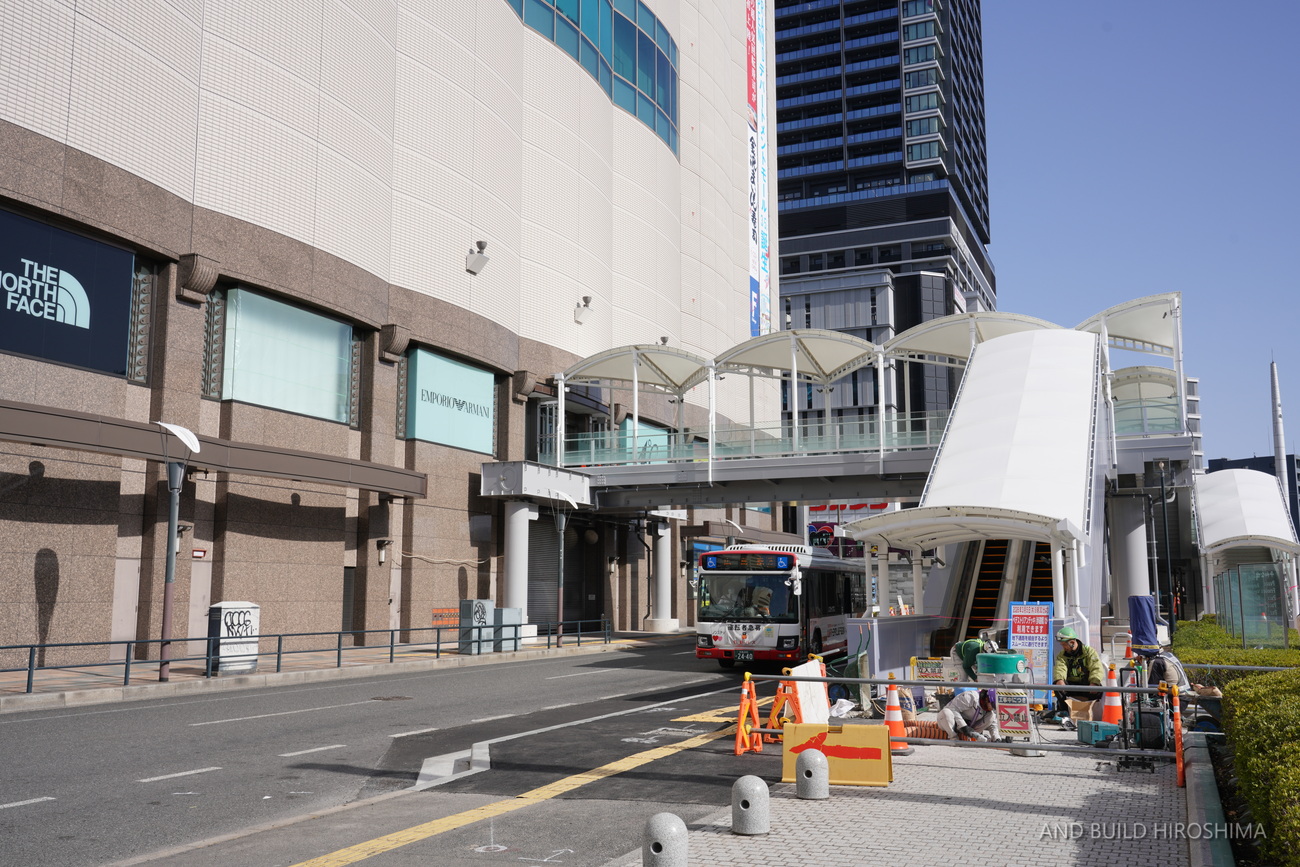 本設の屋根の区間、その先のエールエールHIROSHIMA2階エントランスがよく見えます。