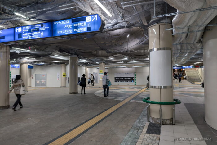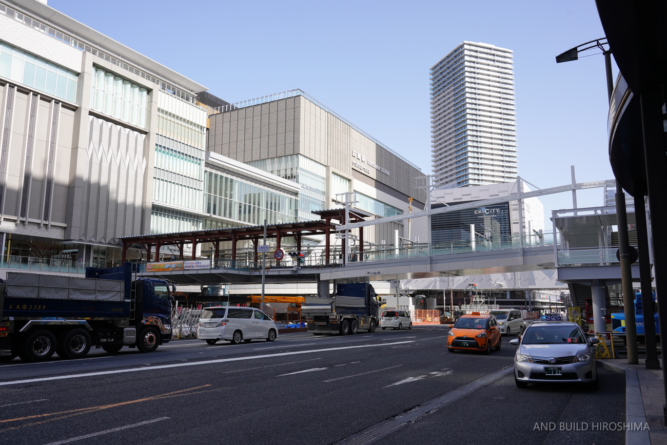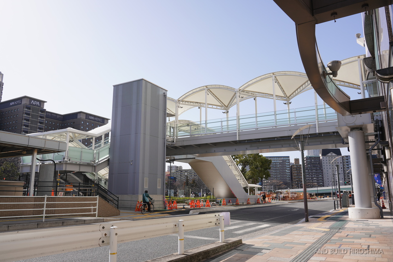 と言いつつ、エールエールの再開発以前には歩道橋がありました。当時の都市計画はアストラムラインの南北線構想(広島駅~広大本部跡地)もあり、地下を志向していたことを象徴しています。