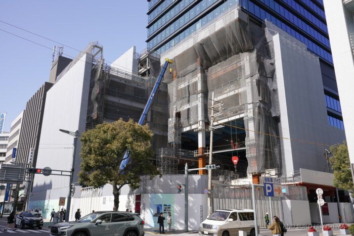 工事の揚重ヤードとなっており、最終的には東の路地まで拡大されます。