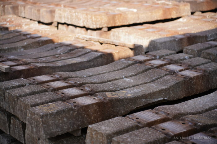 駅の敷地内には撤去した線路のPC枕木が残されていました。