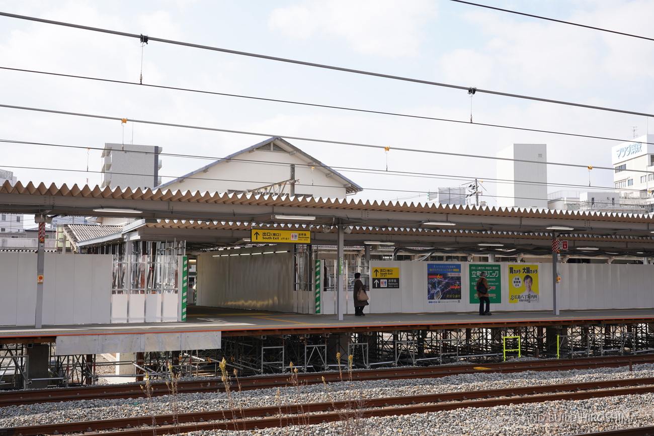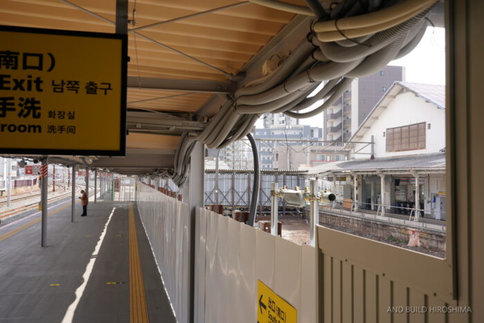 ホームを歩いていて気がついたのは、先に使用開始している下りホームよりも更に仮設感が強いこと。