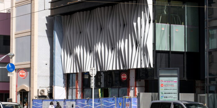 2階のファサードには、イメージパースで見られていたフィン状のルーバーが設置されていました。