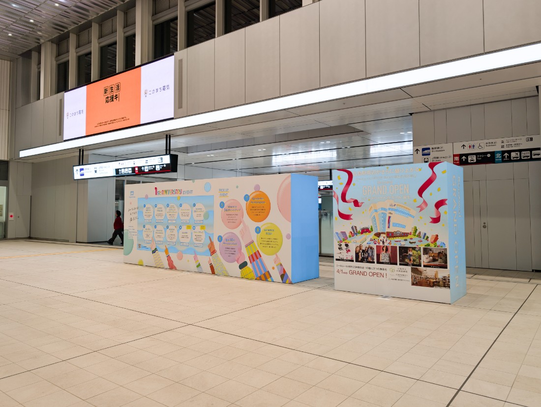 アトリウム空間にはミナモア1周年を記念するボードが設置されていました。