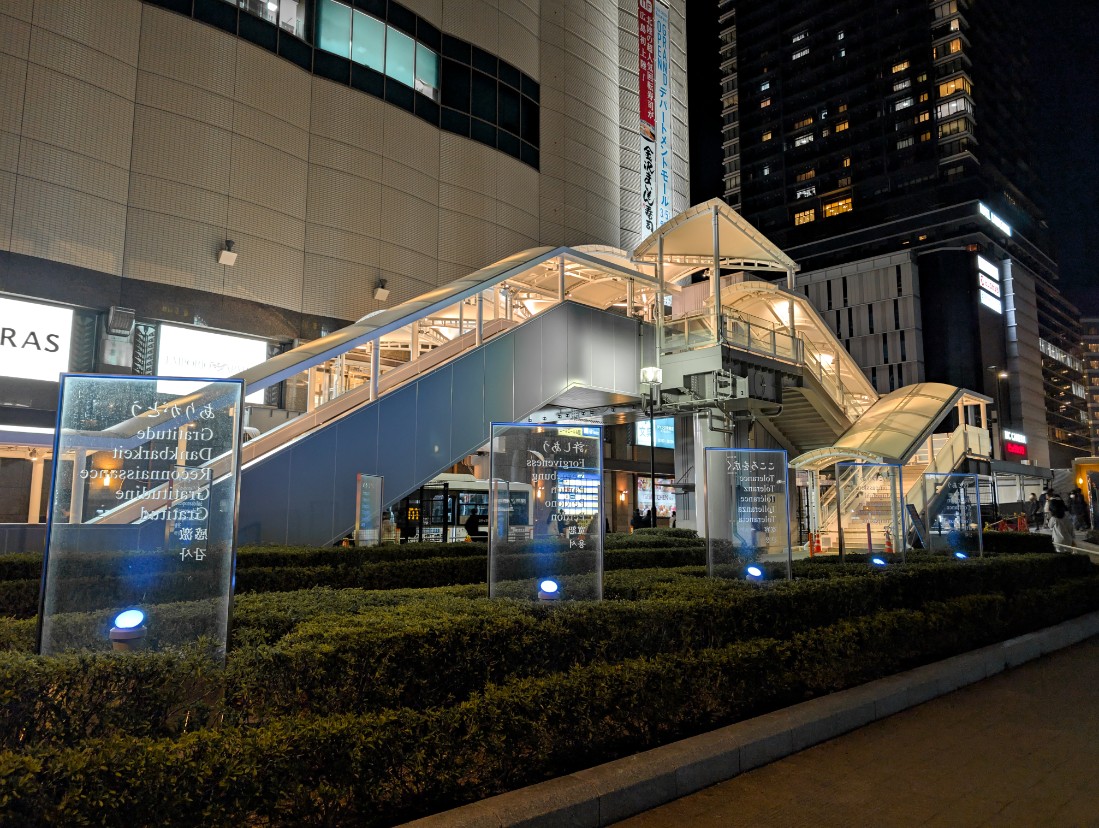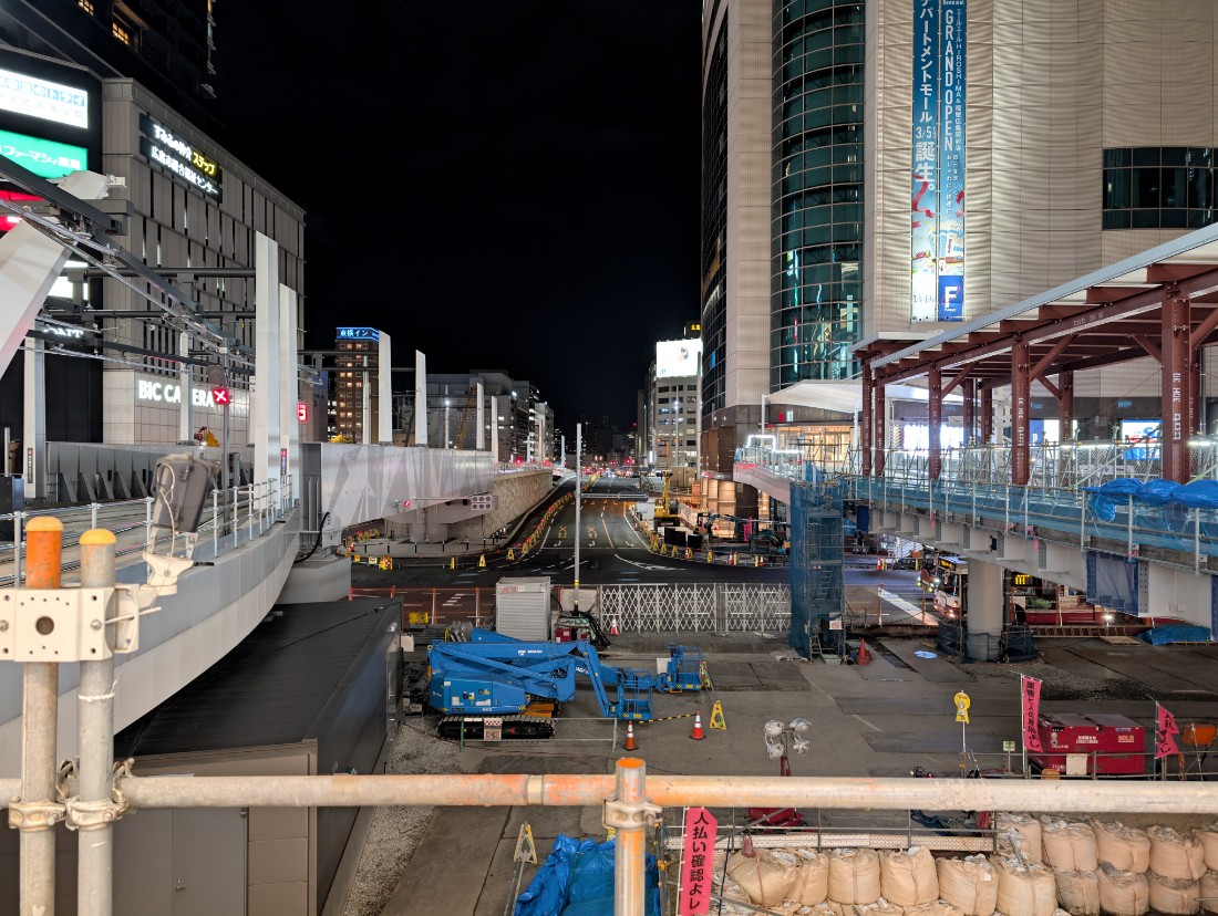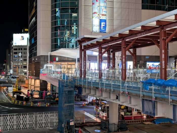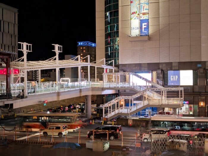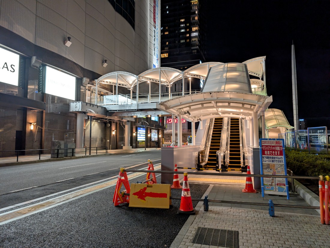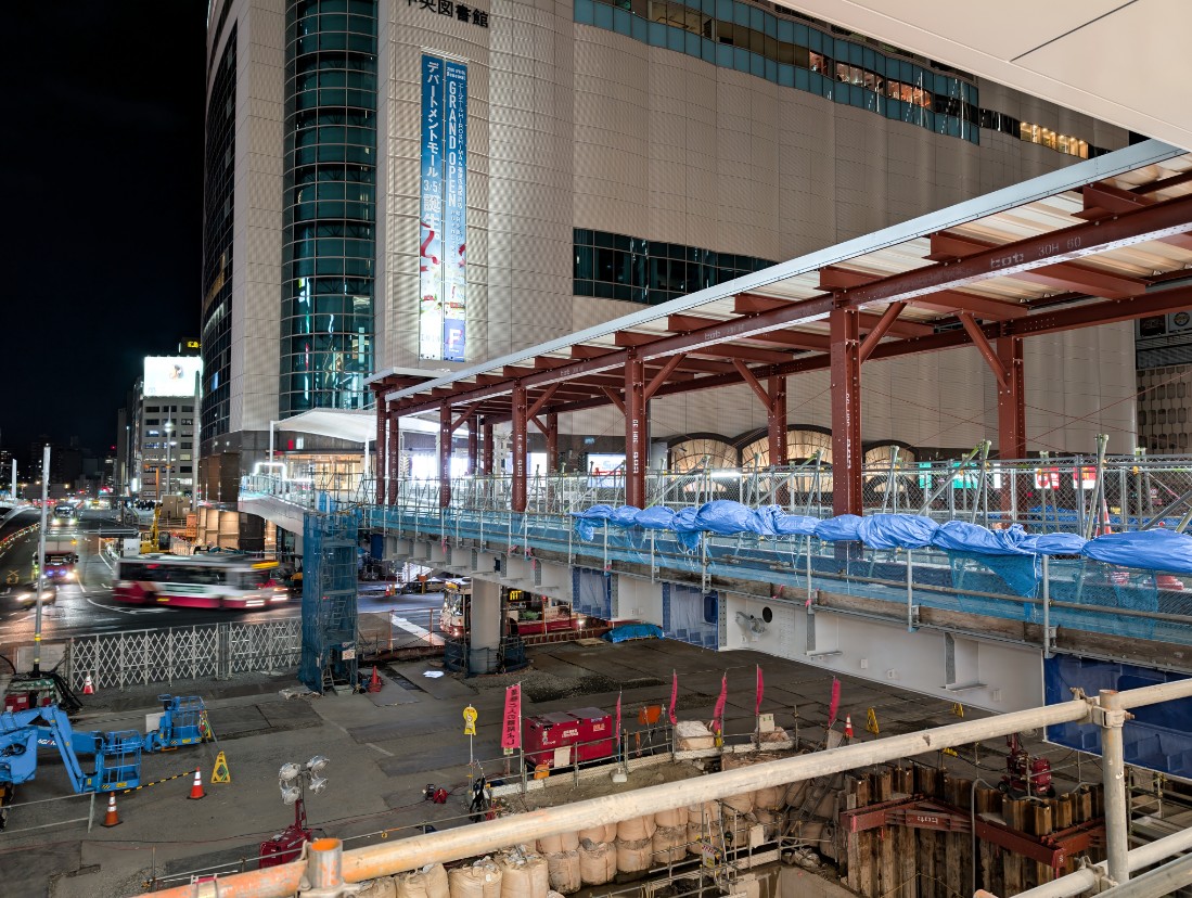駅ビルオープンと駅前大橋ルートの開業で大きな節目を迎えしたが、地上のバスのりばやマイカー乗降場の再整備、周辺施設までのペデストリアンデッキや大屋根の整備などが続けられています。