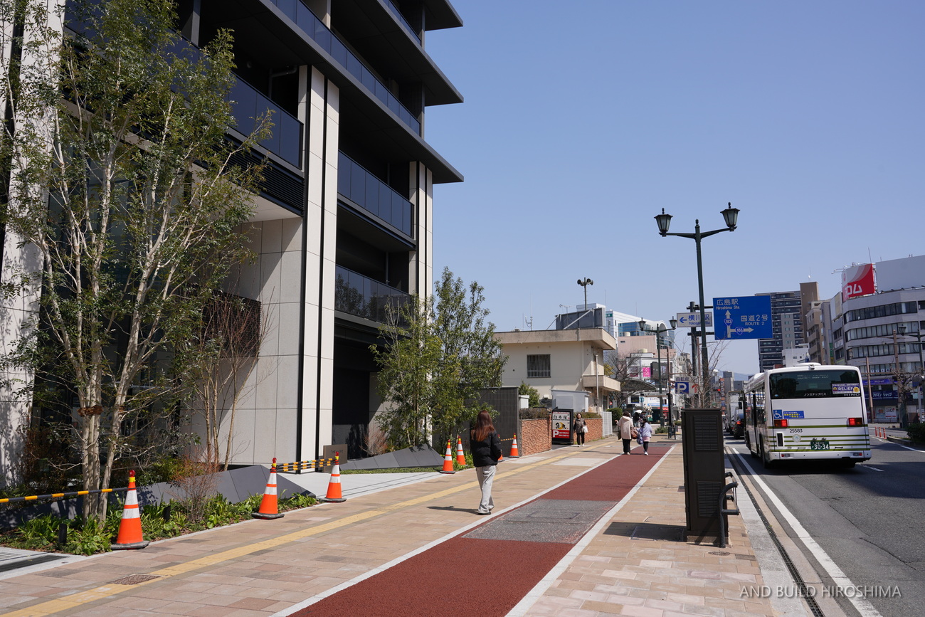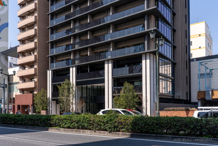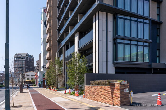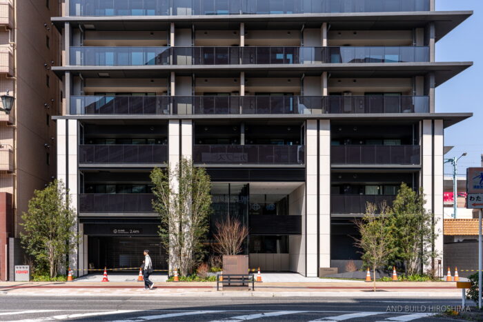 さすが”横川のフラッグシップ”を意識したデザインで、高級感や重厚感が見事に演出されていますね。植栽とのバランスも美しいです。