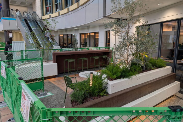 シーティングスペース設置!什器や植栽搬入しリニューアル進む