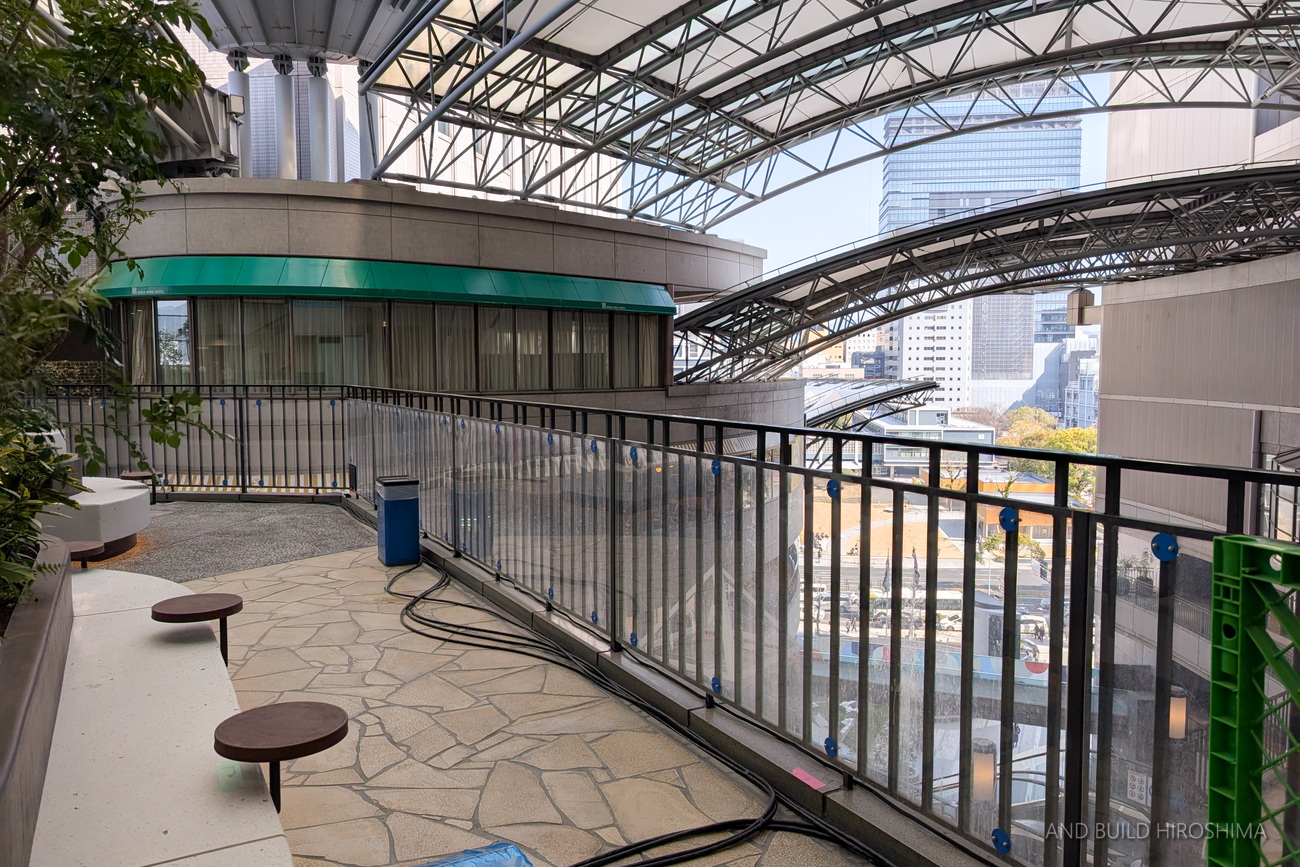 イベントスペース「スカイパティオ」やシェアキッチンフードホール「ReDine広島」などがある6階まで上がりました。